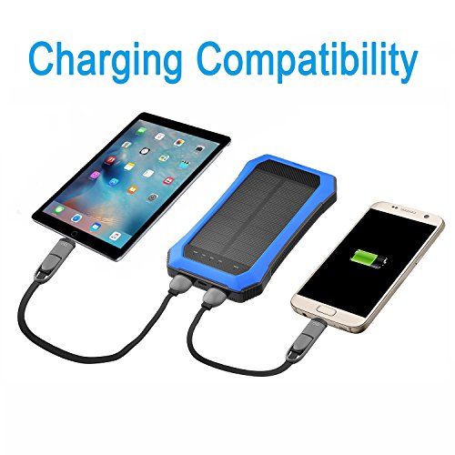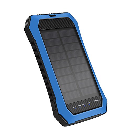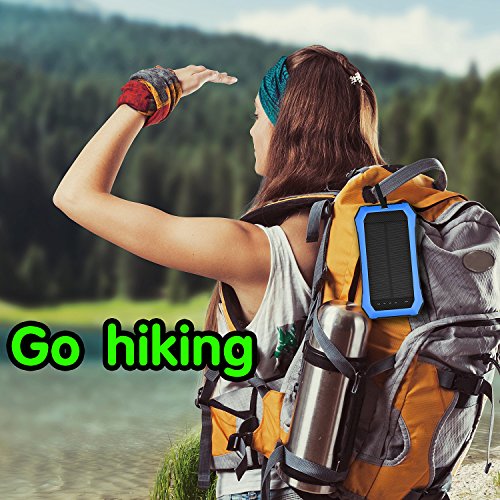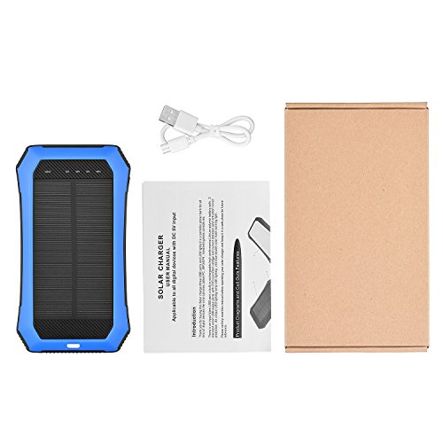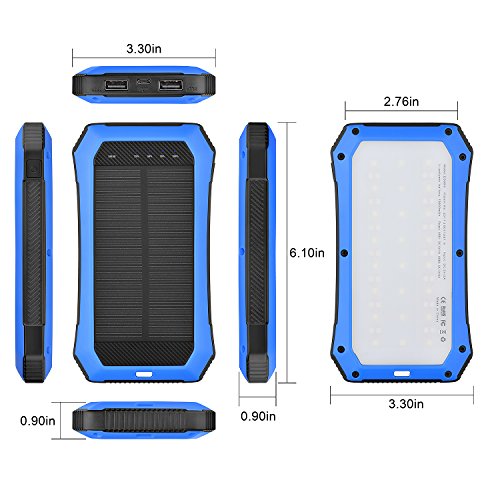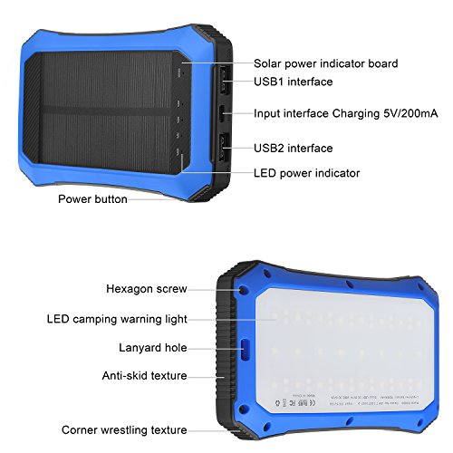 Solar Charger 10000mAh Dual USB Port Portable Power Bank with LED Flashlights Outdoor Emergency Camping for All USB Supported Devices by Aokey 2017 New Version (Blue)