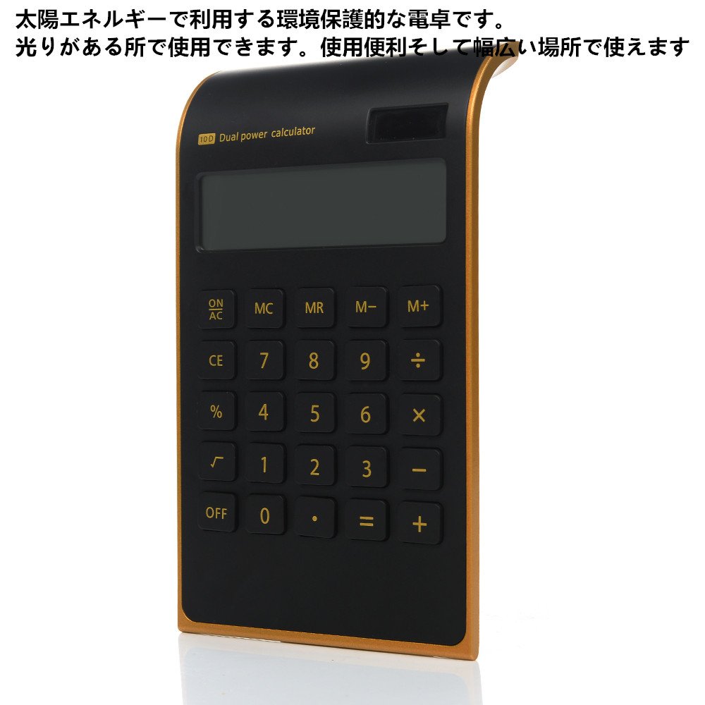 太陽エネルギーで利用する環境保護的な電卓です。光りがある所で使用できます。使用便利そして幅広い場所で使えます。