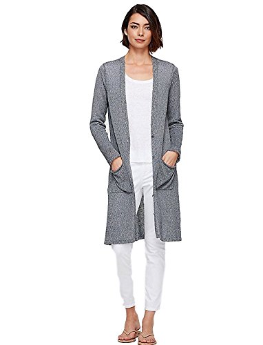 The cardigan, in a fluid knit with a hint of sheen. Long and lean with slouchy pockets.