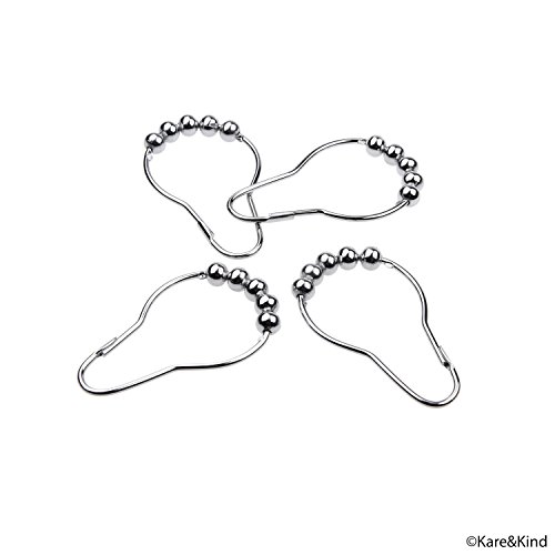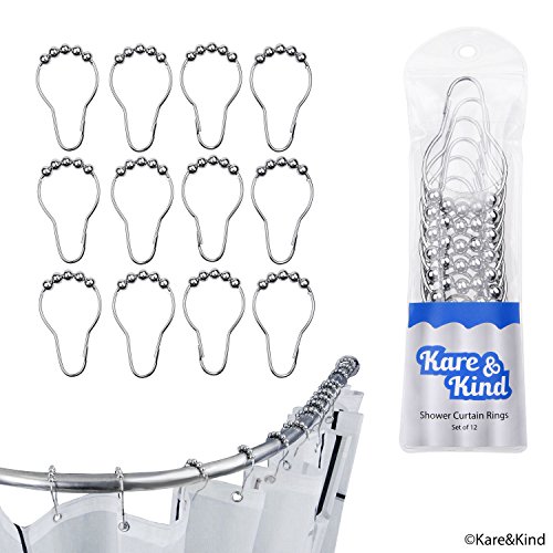 Shower Curtain Rings - Set of 12 - Friction Free Gliding Rollers - Rust Proof Stainless Steel - Original Heavy Duty Sliding Hangers - High Quality Polished Chrome - Easy to Install Locking Clips