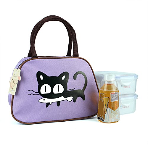 Magicoo Lovely Cute Picnic Lunch Bag Tote Food Storage Containers (Cat--Light Purple)