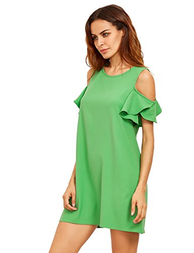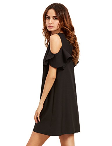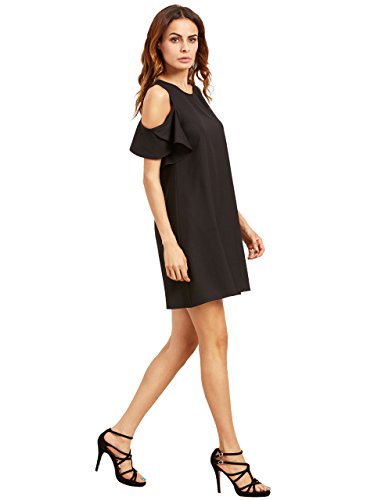 -. Title : Milumia Women's Cold Shoulder Ruffle Sleeves Shift Chiffon Dress