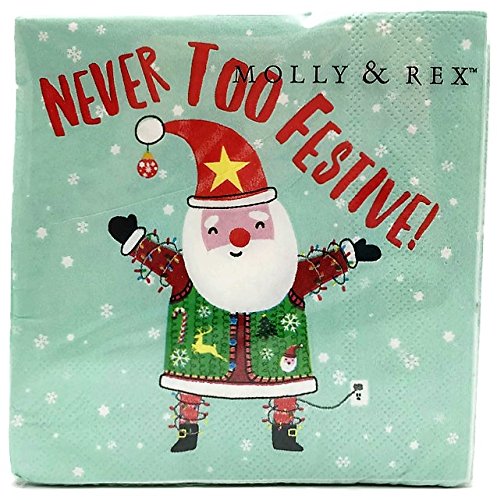 Molly & Rex Santa Cocktail Beverage Paper Napkins, Never too Festive 16213, 40 ct