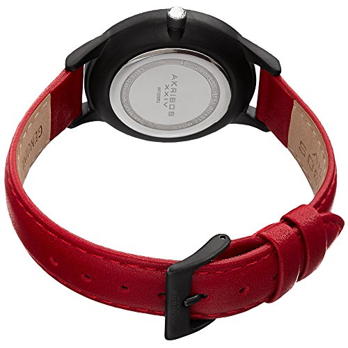 -. Title : Akribos XXIV Women's Quartz Striated Black & Red Leather Strap Watch - AK1005RD