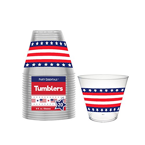 - 20 count package of hard plastic glasses with flag print - holds 9 ounces