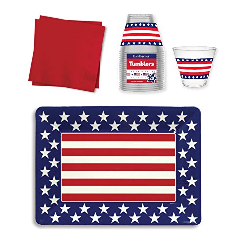 Patriotic Parties Serving Tray with Plastic Party Cups & Beverage Napkins