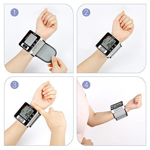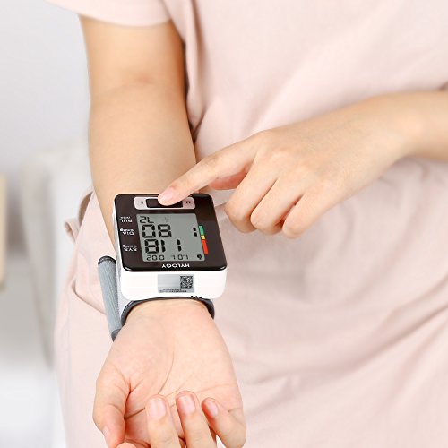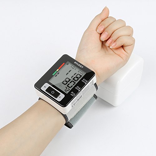 -. Feature : Professional and Certificated: When the measurement has been completed, the systolic, diastolic and pulse rate will appear on the display. large LCD screen showing you clearly all the readings about your health, and the irregular heartbeat detector alerts you while you are under this situation. / Accurate and Reliable: Auto cuff inflation and deflation is ultra-silent and user-friendly. The diastolic and systolic pressures were measured using the pressure of the inflatable pump. Measurement rage 0-299 mmHg with accuracy ±3 mmHg. / Easy to Use: All operations on 3 buttons, blood pressure was measured by oscillometric method, and blood pressure was determined by establishing the relationship between systolic, diastolic, mean of pressure and systolic wave of cuff pressure. / The blood pressure monitor automatically stores 2 X 90 Sets measurement value with date and time stamp allows you to review readings and control better the health status. Last three readings average, FDA approved device. Auto shutoff in 3 minutes to save energy. / Packet Contents: Hylogy Wrist Blood Pressure Monitor, Storage Box, User Manual, Warranty Card