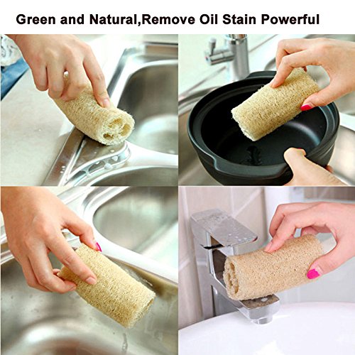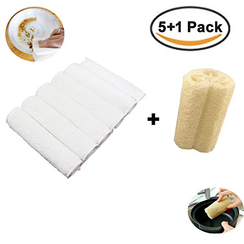 Antibacterial Dish Cloth White(5-Pack) with Loofah Kitchen Sponge 5 Inch