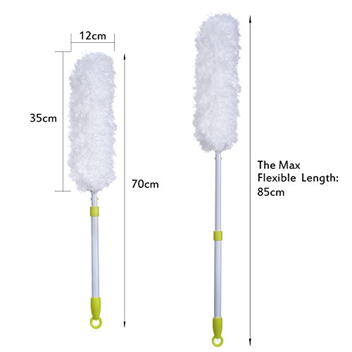 - Extendable handle: the duster handle can be easily extended to 85 cm (maximum length); And the microfiber area also can be bent to clean different places conveniently