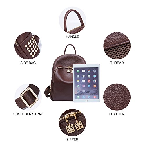 -. Feature : High Quality Material:Top grain cowhide leather,High quality golden hardware,Polyester lining. Same stitching matches the same color of backpack purse.Genuine leather backpacks for women, perfect for college school as fashion bag,school bag,mini travel bag. / Delicate Brand:Famous brand,Original design,handmade by professional artisans.Mini and Elegant leather bag for Women & Girls,Fit for traveling,working,dating,shopping. Great gift for your female friend, it will be a SurP.R.Ise. / Dimension:Soft back and top handle,Zipper closure with metal logo pull,2 side packs and 1 back purse(The large one have NO back pocket).It's portable and designed for the safety of your properties.Have 2 sizes, the small and large. Exquisite mini backpack purse for women. / Structure:Contain 1 generous pockets,included 1 wall zippered pocket and 1 phone pack.Easily carry your mobile phone,wallet,cosmetic,umbrella and other daily essential things.It is Portable and Multifunction. / Applicable:Shoulder bag with buckle fastening adjustable shoulder strap and can be changed to be used as:Backpack,Messenger bag,Shoulder Bag,Sling Bag or a Hobo.The straps are very comfortable and sturdy,can be last long time.