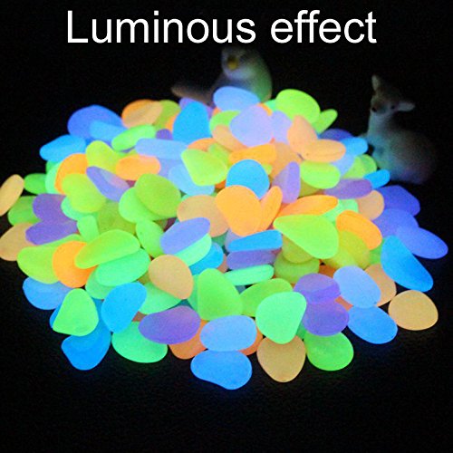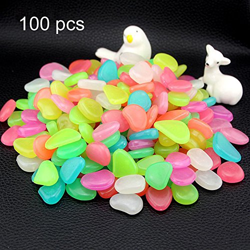 100pcs Luminous Stones Glow in the Dark Stones, Garden Pebbles Rocks for Outdoor/Walkway/Window/Yard Grass and Fish Tank Decoration (Multi-color)