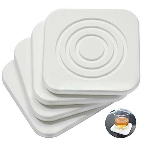 Drink Coasters Absorbent - White Stone Drink Coasters for Hot and Cold Drink - Diatomaceous Earth Stone Quick Dry (4 Pack)