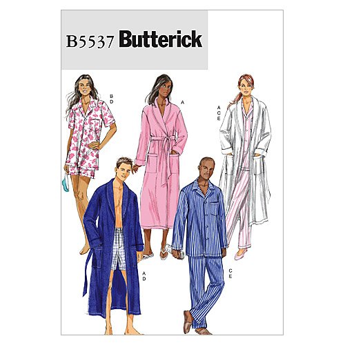 Butterick Patterns B5537 Misses'/Men's Robe, Belt, Top, Shorts and Pants, Size XN (XLG-XXL-XXXL)