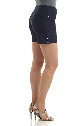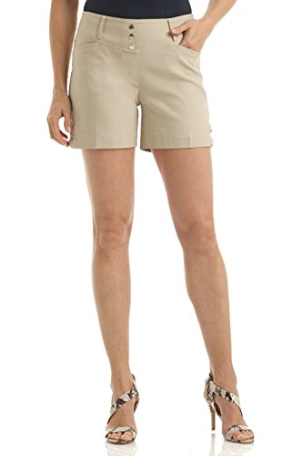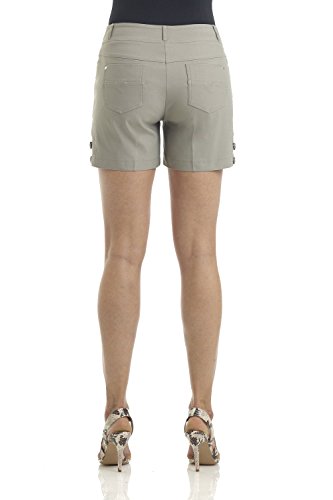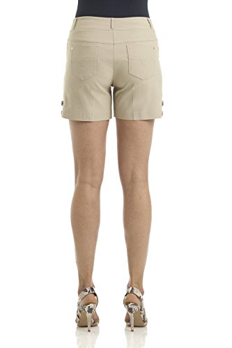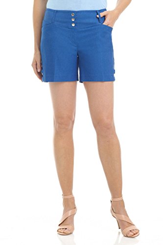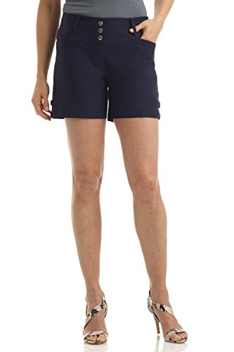 Binding : Apparel Product Description Ease into the newest Rekucci pull-on short with our signature comfort contour waistband. Featuring our most flattering 5" inseam length and an easy leg, this is the short you won't want to take off this summer. Incredible details such as triple faux snaps at the waist, side tabs with real snaps, and functional pockets front and back. You won't believe this is a pull-on short! The metallic accents elevate your look and make it a cinch to take this short from day to evening! Solid Colors: 74% Rayon 22% Nylon 4% Spandex - Melange Colors: (ocean blue mix) 48% Polyester 27% Rayon 21%Nylon 4% Spandex 0