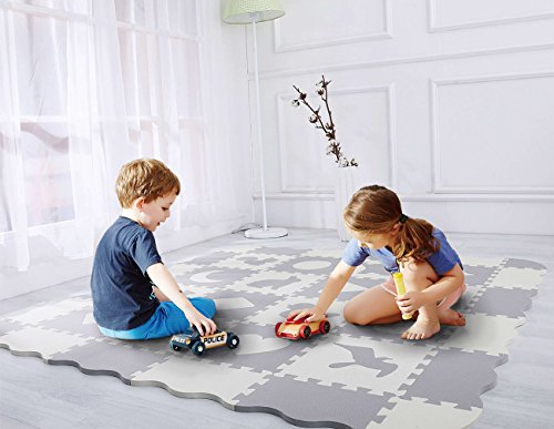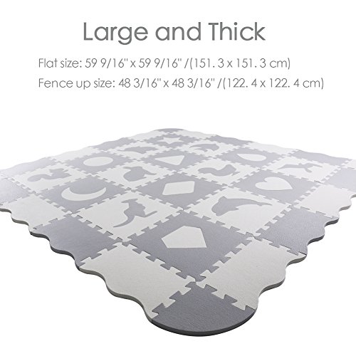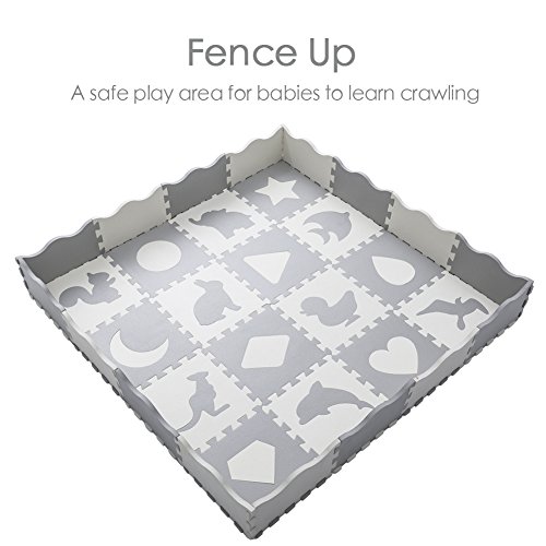 (SUPERJARE)/Gear/Playards/DIRECT FROM USA/Baby Play Mat with Fence, Superjare Extra Thick (9/16") Foam Floor Tiles with 16 Patterns, Non-...