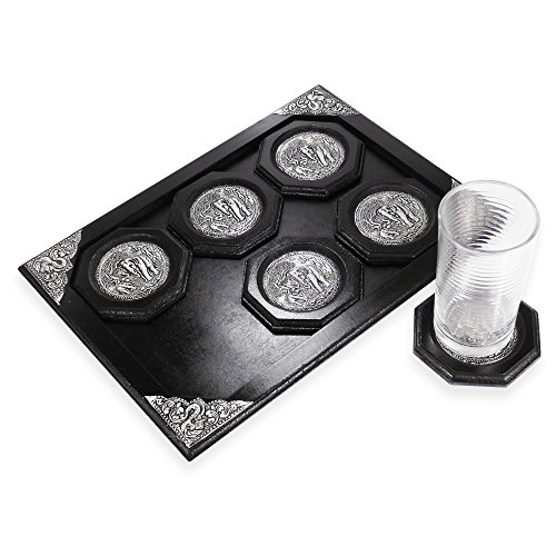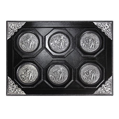 Elephant Pewter Embellish Handmade Wood Coaster Set and Tray
