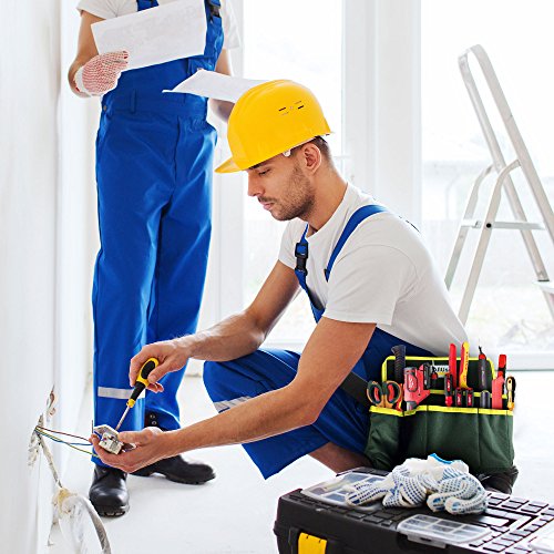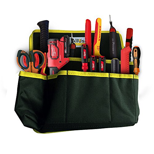 Tool Belt Pouch Bag for Electricians Contractors Painters with Clip, Multi Pockets, Small Compartments Electrical Job Supplies Holster Storage Organizer and Divider w/ Velcro Strap By All Use