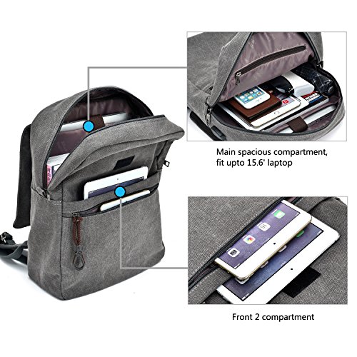-. Feature : COMFORTABLE DESIGN:Designed for everyday comfort,Padded S-type Strap&Handle, Air-flow back,which makes the backpack feel more comfortable,breathable and absorb sweat. / DUARBLE MATERIAL:Washed Canvas,lightweight,Ideal for using as book bag, travel daypack; for daily use at school, work, weekend, outdoor holiday, outdoor activities, occasional travel, gyms, hiking etc. Nice size admirably suits college students, teen girls boys and adults / ORGANIZED ROMMY COMPARTMENTS:3 MAIN pockets ,provides a separated space for your Laptop,textbooks, magazines, iPhone, iPad, pen, keys, wallet, books, clothes,bottle and more. Easy find what you want / PROPOTIAL SIZE:Carry-on all the way,External Size: 15 x 11.4x 5.1 inch. ,Fit LESS THAN 15 inch Laptop / Notebook / MacBook / Acer / Asus / Dell / Fujitsu / Lenovo / HP / Samsung / Sony / Toshiba etc. Separated thick computer laptop compartment help to protect your computer better / MULTIFUNCTION&USB CHARGING PORT: Putting your Power Bank into backpack and connect internal USB cable, then let your charging cable insert external USB port to connect your electronic device,hands free and not worry about power off any more