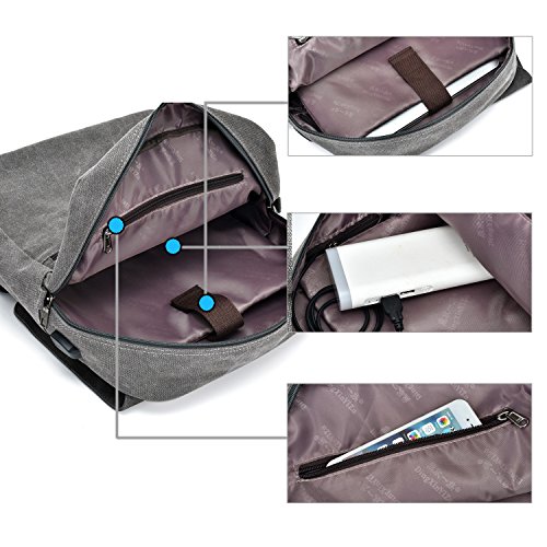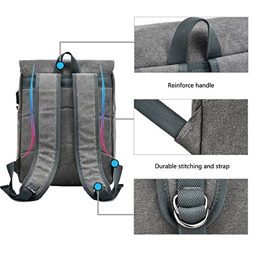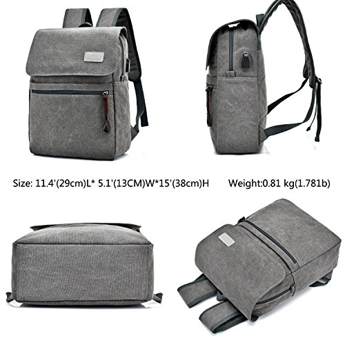 -. Title : Lightweight CanvasCollege Backpack School Bookbag Canvas Laptop Rucksack with Usb Charging Port Fit upto 15.6