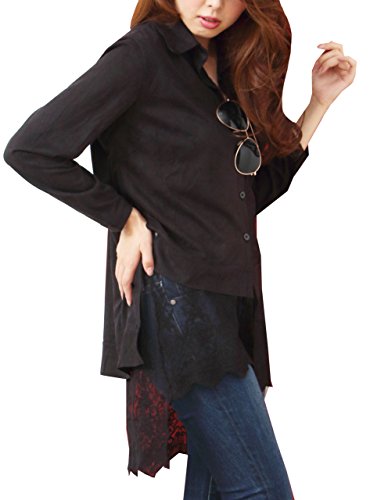 -. Title : (Goldjapan)ゴールドジャパン 大きいサイズ 大きいサイズ レディース スエード レースシャツ テールカット シャツ 長袖 お呼ばれ 体型カバー