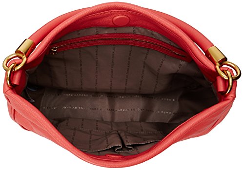 This classic Marc by Marc Jacobs handbag is constructed in durable pebbled leather and accented with brushed hardware. Curved lines structure the front and back, and the bag can be carried with a short handle or a detachable shoulder strap. The main snap opens to a logo-lined interior with 3 pockets. Dust bag included.Feature