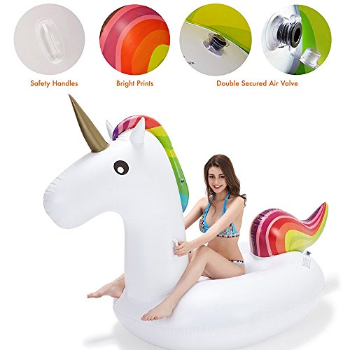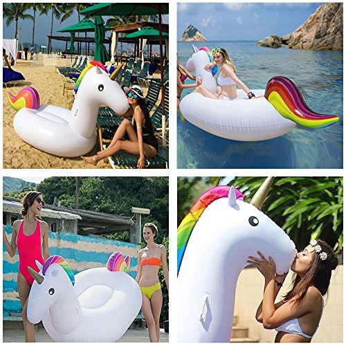 Lovebay Aufblasbare Einhorn,Aufblasbares Spielzeug Schwebebett Floss ,Pool Schwimmtier Planschbecken fur 2-3 Personen Erwachsene &Kinder