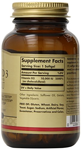 EASY TO ABSORB: The formulation of Solgar Vitamin D3 10,000 IU softgels offers advanced Vitamin D3 support in simple, oil-based softgels in order to promote optimal absorption and assimilation