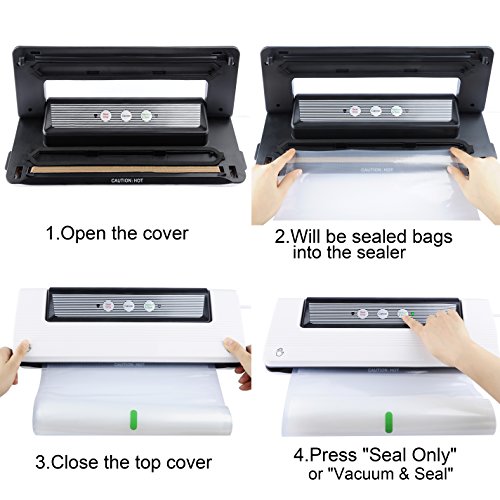 - ★EASY TO OPERATE - One touch vacuum sealer operation, automatic end function when complete with indicator displaying process. Keeps dry and moist foods fresh, prevents freezer burns on frozen fruits and vegetables, keeps ingredients entirely free from nasty bugs and bacteria and locks nutrients in food to give your families a healthy and nutritious life.