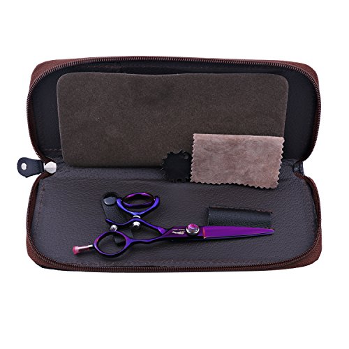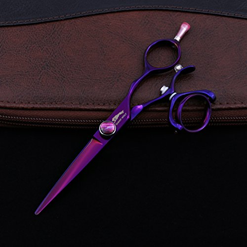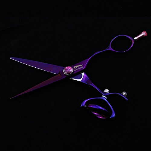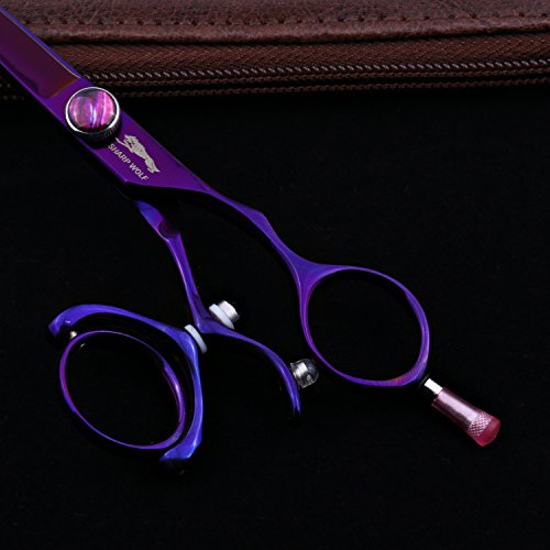 SHARP WOLF 5.5" Professional Purple Swivel Handle Hair Scissors Cutting & Thinning Shear for Barber