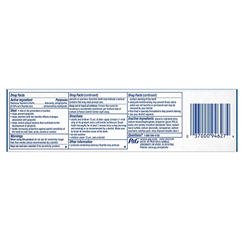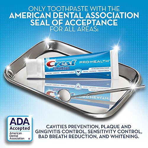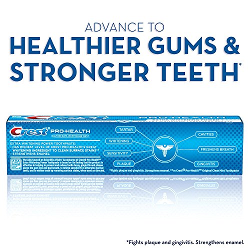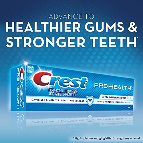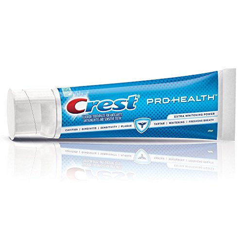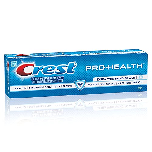 -. Binding : Misc. -. Brand : Crest -. EAN : 0037000946274 -. Feature : Aids in prevention of cavities / Helps prevent gingivitis / Helps interfere with the harmful effects of plaque associated with gingivitis / Helps control plaque bacteria that contribute to the development of gingivitis / Builds increasing protection against sensitivity of the teeth to cold, heat, acids, sweets or contact -. IsAdultProduct : 0 -. Label : Procter & Gamble Health Care -. Manufacturer : Procter & Gamble Health Care -. MPN : 122823 -. NumberOfItems : 2 -. PackageQuantity : 2 -. PartNumber : 122823 -. ProductGroup : Beauty -. ProductTypeName : BEAUTY -. Publisher : Procter & Gamble Health Care -. Size : 5.1 oz -. Studio : Procter & Gamble Health Care -. Title : Crest Pro Health Extra Whitening Toothpaste Fresh Clean Mint 5.1 oz(144g) - Pack of 2 -. UPC : 037000946274