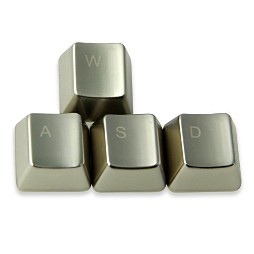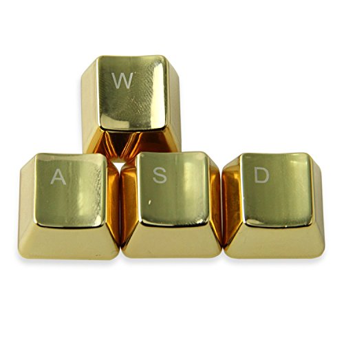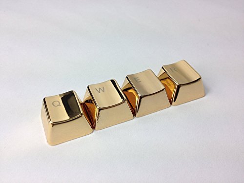 Bradychan® Electroplating Silver&Gold Keyset Zinc Transparent 4 Key Caps with 1 Free Gift Key Puller Cherry MX Keycap for Metal Mechanical Keyboard (QWER Gold)