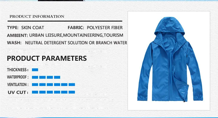 Function:Windproof, Quick Dry, Water Resistant , Sunsreen, (Sun protection,UPF40+)