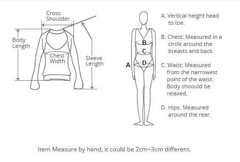 | Size | Chest | Length | Sleeve | Body Height | Body Weight(kg) |