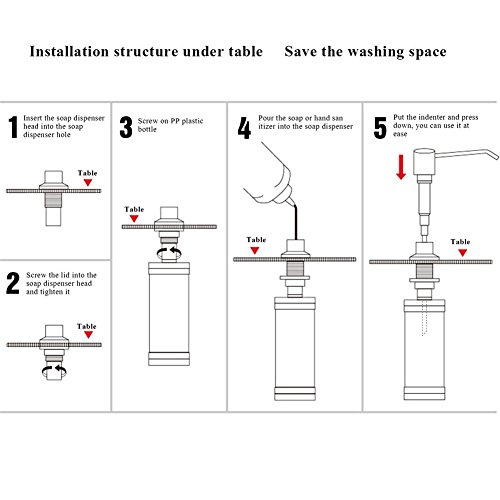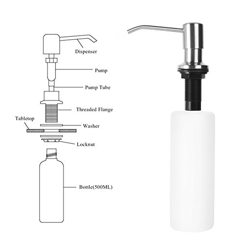 2.Large volume: The mounted soap and lotion dispenser in stainless steel is ideal for holding up to 17 oz. 3.15" nozzle. So that dish soap can be pumped into the sink manufactured with quality materials works as a soap dispenser or as a lotion dispenser