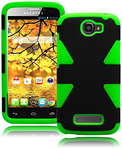 One Touch Fierce 2 Case, Bastex Heavy Duty Hybrid Dynamic Protective Case - Neon Green Soft Silicone Cover with Black Hard Shell Case for Alcatel One Touch Fierce 2 7040T, Pop Icon A564C