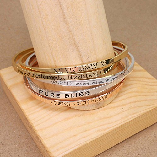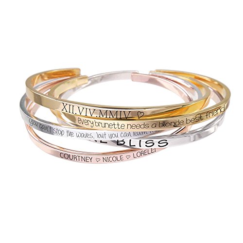 -. Binding : Jewelry -. Brand : Lauren-Spencer -. Department : womens -. Feature : -Gorgeous fine Handmade brass bangle personalized just for you / -Available for engraving on both sides / -Handmade with fine brass with real 20 kt SHINY gold, silver, or rose gold plating / -Comes beautifully gift boxed with a story card. Will ship around 2 weeks / -Select from various fonts and symbols -. Label : Lauren-Spencer -. Manufacturer : Lauren-Spencer -. Model : BBR288 -. MPN : BBR288 -. PartNumber : BBR288 -. ProductGroup : Jewelry -. ProductTypeName : FASHIONNECKLACEBRACELETANKLET -. Publisher : Lauren-Spencer -. Studio : Lauren-Spencer -. Title : Personalized Monogram Engraved Customized inspirational handmade SHINY brass mantra cuff Bangle bracelet, BBR288, BBR446
