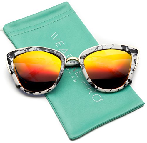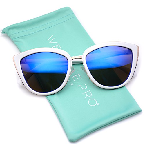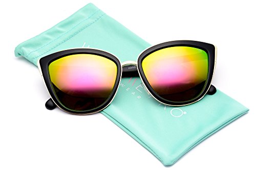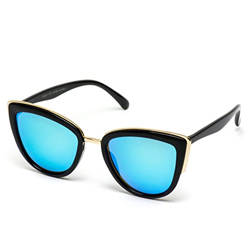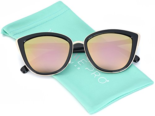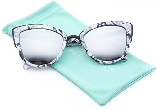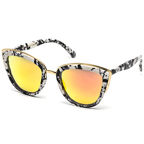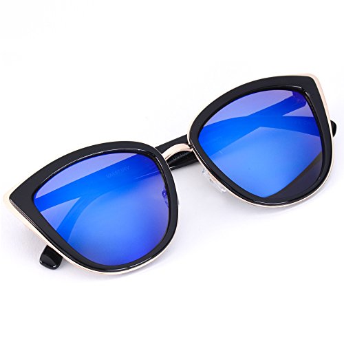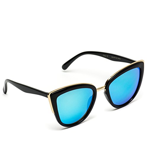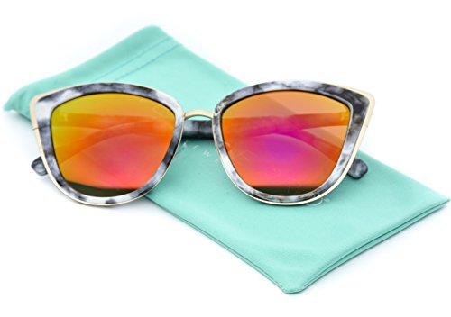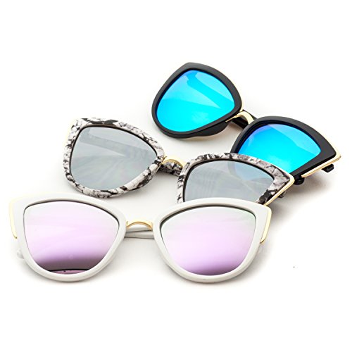 | Womens Cat Eye Mirrored Revo Reflective Lenses Oversized Cateyes Sunglasses |