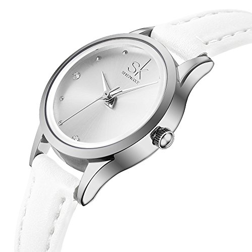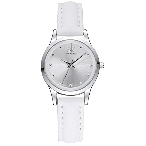 SK Small Watches for Women Leather Watch Band Quartz Waterproof Crystal Diamond Fashion Casual