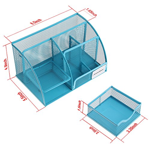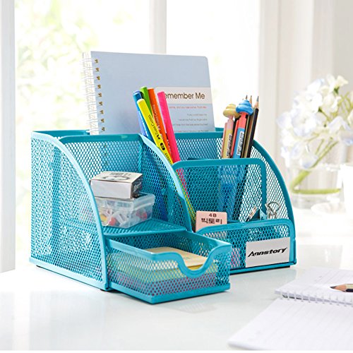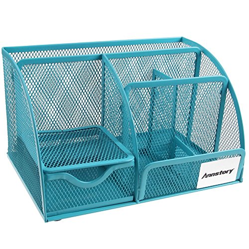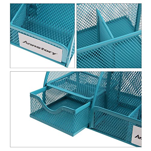 Annstory, Home Office Mesh 1- Drawer Tray Desktop Organizer with 6 Compartments, Blue