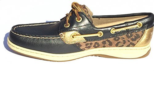 Sperry Women's Bluefish Leather Sparkle Leo Black Boat Shoes, 6.5 M