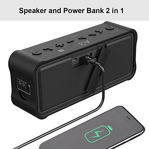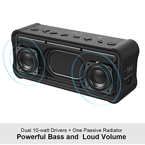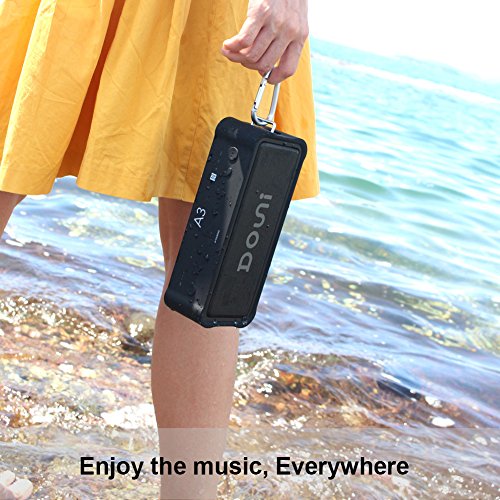 Gorgeous sound The Douni A3 portable bluetooth speaker is inserted with advanced DSP chip and powered by 2 x 10W stereo drivers . It deliveries powerful, balanced sound with clear highs and robust bass response. Most current Bluetooth version: The Douni A3 portable wireless speaker has high efficiency and stable wireless data transmission .It can pair in seconds with all types of devices with Bluetooth functions, including iPhone, iPad, iPod, Android smartphones, Kindle, and tablets. Play audio from laptop, PC, TV, and non-Bluetooth devices using included 3.5mm audio cable. Rugged and Waterproof: IPX7-rated waterproof and dust-tight, you can definitely take it to the beach or hang it into the shower.