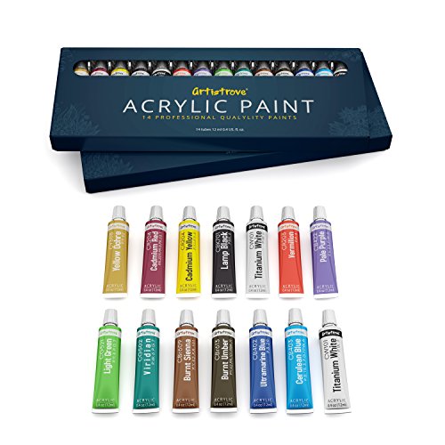 ☺ Splendid Color Variety - Artistrove™ Acrylic Paint Set comes with 14 Vibrant Color, including 2 of Titanium White tubes and Lamp Black tubes, and 1 of each : Lemon Yellow, Yellow Ochre, Vermilion, Crimson, Hooker’s Green, Viridian, Ultramarine Blue, Cobalt Blue, Burnt Sienna & Raw Umber