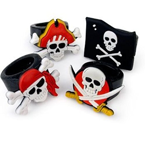 -. Binding : Toy -. Brand : Fun Express -. ClothingSize : One Size -. Color : Multi-colored -. EAN : 0887600343740 -. Feature : Includes 12 plastic pirate rings / Each measures approx. 1" / Classic black and red with skull and crossbones design / Fun for a pirate theme birthday party favor / Styles vary - patterns may repeat -. IsAdultProduct : 0 -. ItemPartNumber : FNEIN-24/1864 -. Label : Everready First Aid -. Manufacturer : Everready First Aid -. Model : FNEIN-24/1864 -. MPN : FNEIN-24/1864 -. PackageQuantity : 1 -. PartNumber : FNEIN-24/1864 -. ProductGroup : Toy -. ProductTypeName : TOYS_AND_GAMES -. Publisher : Everready First Aid -. Size : One Size -. Studio : Everready First Aid -. Title : Fun Express Rubber Pirate Rings (12 Count) -. UPC : 793625001865 -. Warranty : No Warranty