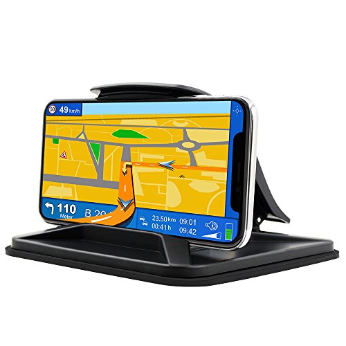 -. Feature : Super Compatible Mounts: This car mount universal fit for most mobile phone from 3"to 7", like for iphone X/ 8/ 7/ 7plus, Samsung Galaxy Note 8 S8 plus, S7 Edge, LG K7 V20 and more. / STABILITY: Triple reinforcement on dashboard, large silica gel base, plus a circle of adhesive silicone film and a suction cup, make the phone holder stand firmly on your car. / SECURITY: Car holder made of high quality sP.R.Ing, as well as two ends of clamping go with non-skip silicone, make it hold the phone securely and won't slide or fly out even taking a sharp turn, sudden stop or accelerate. / MOBILITY: Sticky silicone material is not permanent attachment to the dash. portable It can be taken off from the dash easily, and the silicone bottom become sticky as new after flush. / Sunshine-resitance:Mounts phone horizontally with 2 different viewing angles (not compatible vertically).