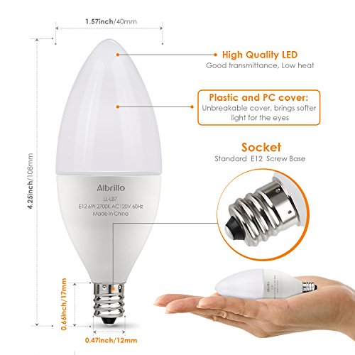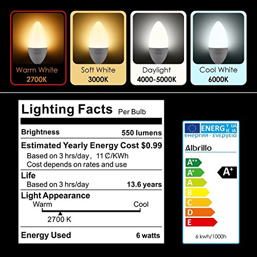 Albrillo E12 LED Bulb Candelabra Light Bulbs 6W, 60 Watt Equivalent, Warm White 2700K, 4 Pack
