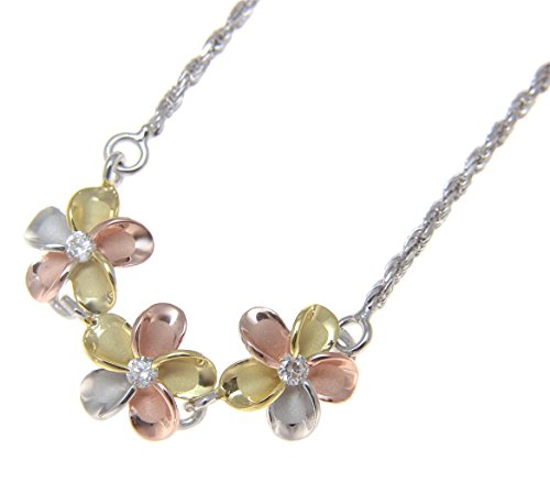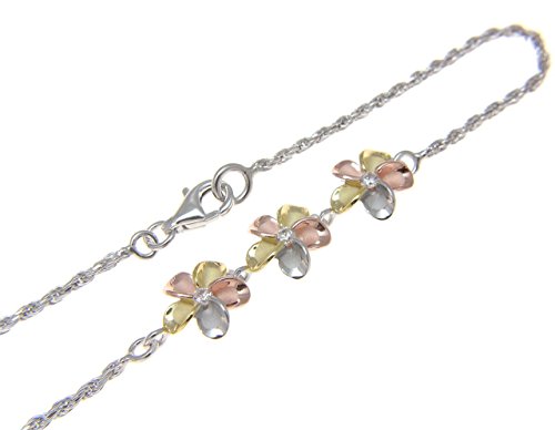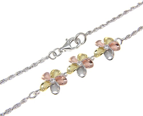 -. Title : 925 sterling silver yellow rose gold rhodium plated tricolor Hawaiian 3 plumeria cz rope chain anklet 9"