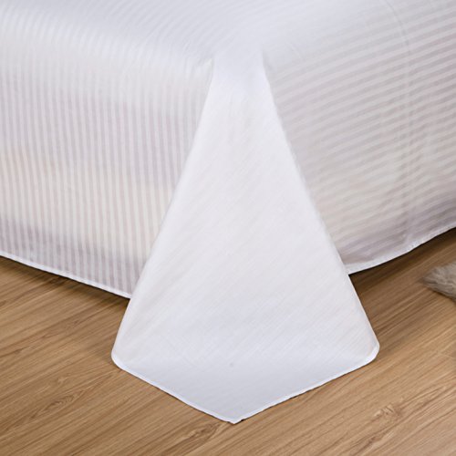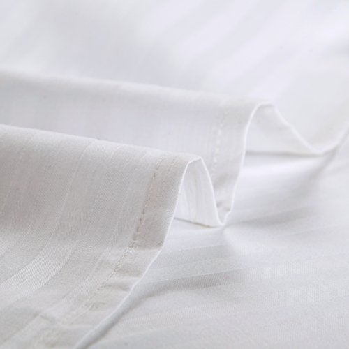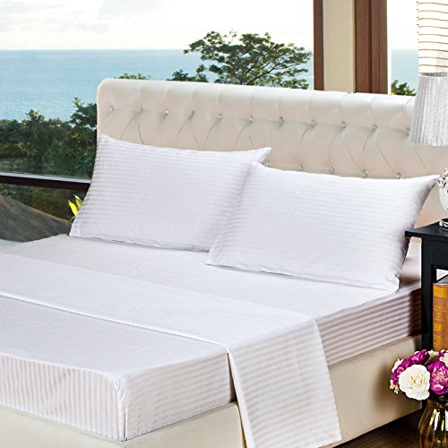 White 600TC Hotel Collection Queen Size 4pc Bedding Set 100% Cotton, Sateen Stripe, Deep Pocket