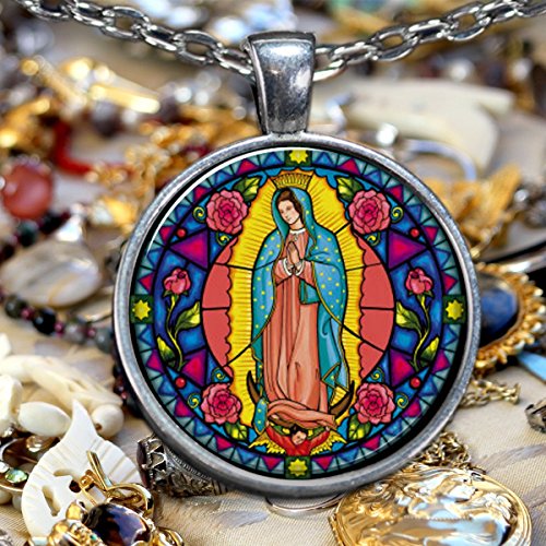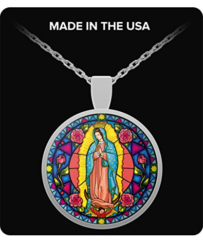 -. Binding : Jewelry -. Brand : Alexa's Jewelry Box -. Department : unisex-adult -. EAN : 0661632823162 -. Feature : 24 INCH silver plated chain that easily fits around anyone's neck. Makes a GREAT gift. / Every piece is HANDMADE in the USA so every piece will be 100% unique. We P.R.Int and pack in a protective bubble package and ships from the USA. Every purchase helps support local jobs for seniors. / The design itself is P.R.Inted with the highest quality Epson photo P.R.Inters and inks available and then handmade into a beautiful necklace for just for you. / Pendant is 1 inch in diameter. Silver plated pendant with a custom glass insert to show the highest quality color vibrancy in your necklace possible. Great gift for anyone young or old. / Protective gift bag included to store and protect your beautiful pendant when not in use. -. Label : CHW -. Manufacturer : CHW -. Model : 661632823162 -. MPN : 661632823162 -. PartNumber : 661632823162 -. ProductGroup : Jewelry -. ProductTypeName : FASHIONNECKLACEBRACELETANKLET -. Publisher : CHW -. Studio : CHW -. Title : Our Lady of Guadalupe Religious 1 inch Glass Pendant With 24 inch Chain Virgin Mary Necklace -. UPC : 661632823162