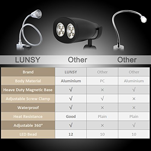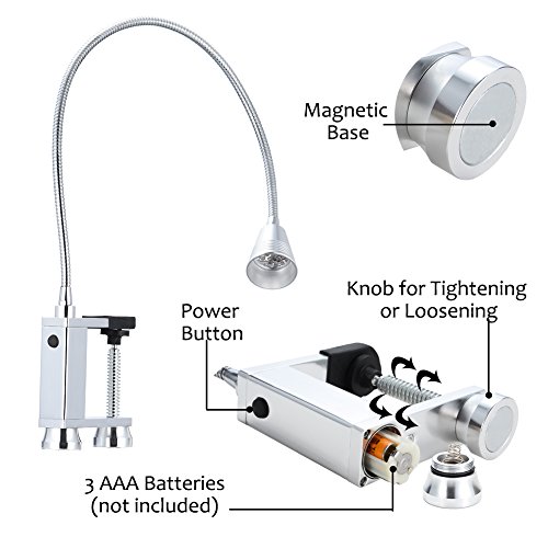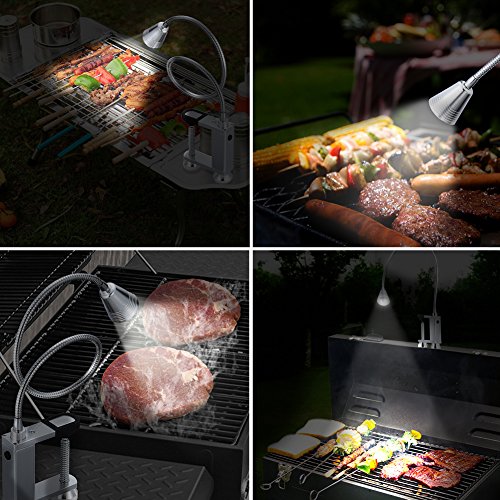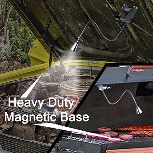 HEAVY DUTY MAGNETIC BASE: Attaches and holds to most metal surfaces like BBQ grills or stove tops it also comes with an adjustable screw clamp for any non metal surfaces making this light great for multipurpose uses from a desk lamp to a work shop light to a BBQ grill light.