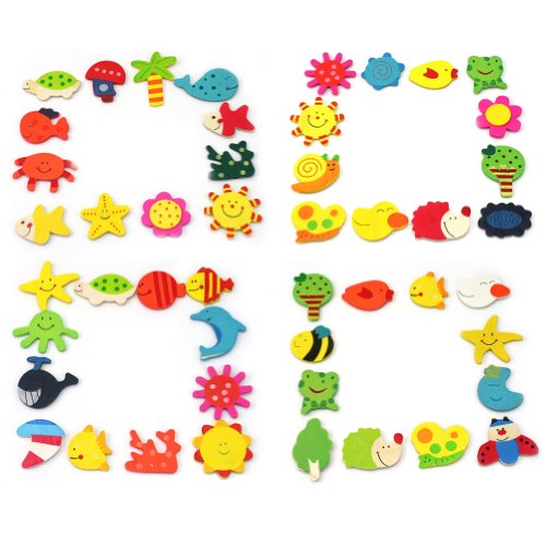 -. Feature : Cute lovely wooden cartoon animals magnet take more fun to your family. / Colorful shapes can decorate your kitchen better. Material: Wooden+magnet / Color: mixed. Each Magnet Size: about 50 x 35 mm / 1.97" x 1.38" / Each pack contains 12 different shapes of wooden magnets. / And you will receive two packs by Random.